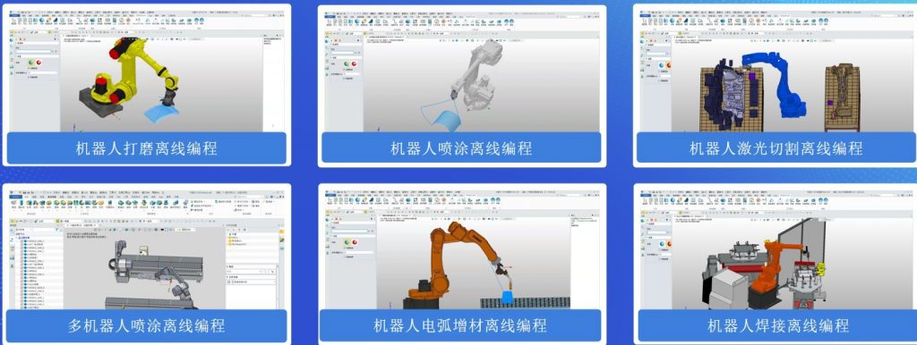 - 機器人加工編程仿真:機器人焊接,機器人激光切割,機器人管切,機器人噴涂等工藝應用。