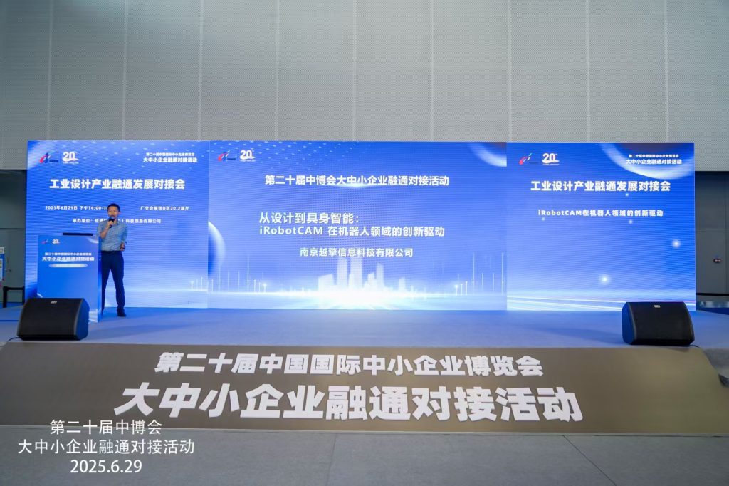 摘要:第二十屆中國(guó)國(guó)際中小企業(yè)博覽會(huì)于2025年6月27日在廣州開(kāi)幕,展會(huì)共有境內(nèi)外近2000家企業(yè)報(bào)名參展,包括主題展、專(zhuān)業(yè)展、配套活動(dòng)和網(wǎng)上中博會(huì)。作為機(jī)器人設(shè)計(jì)與仿真軟件的工業(yè)軟件企業(yè),南京越擎信息科技有限公司在產(chǎn)業(yè)融通對(duì)接會(huì)上全面展示了其自研的全國(guó)產(chǎn)的具身智能設(shè)計(jì)與仿真軟件iRobotCAM產(chǎn)品, 具身智能是一個(gè)火熱的賽道,iRobotCAM可以快速的將結(jié)構(gòu)設(shè)計(jì)變?yōu)榫呱碇悄軝C(jī)器人設(shè)計(jì),與ROS,Issac sim, Matalab, mujoco, bullet等仿真平臺(tái)實(shí)現(xiàn)對(duì)接聯(lián)調(diào)。